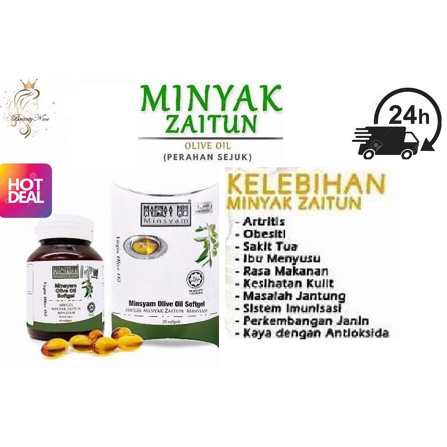Carilah yang ada tulis extra virgin atau virgin. MIinsyam Olive Oil Minyak Zaitun 24 Softgels RM 1250 RM 1125 Units Sold. 2 kapsul sekali sehari selepas makan.